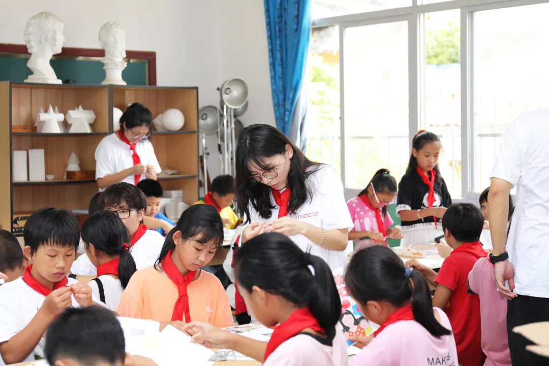 厦门信达爱心团队还为“八一”希望小学的孩子们带来了别出心裁、体验丰富的手工DIY课程与音乐课程。支教团队陪伴孩子们共同制作教师节贺卡、手工礼物,同唱的一曲《有你就幸福》,带给孩子们渴望的温暖。亲密无间的交流,细致与投入的教学工作,也给志愿者们留下了难忘的支教体验。